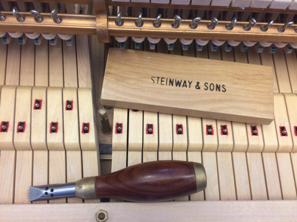 Does your piano sound harsh and bright or dull and muffled? Many people believe that the tone of their piano can’t be changed, but it is not difficult to improve tone. Voicing is the manipulation of the felted wool hammers to make them harder or softer to achieve the tonal characteristics desired by the artist. A skilled technician can make a huge improvement in the tone of a piano in as little as an hour.